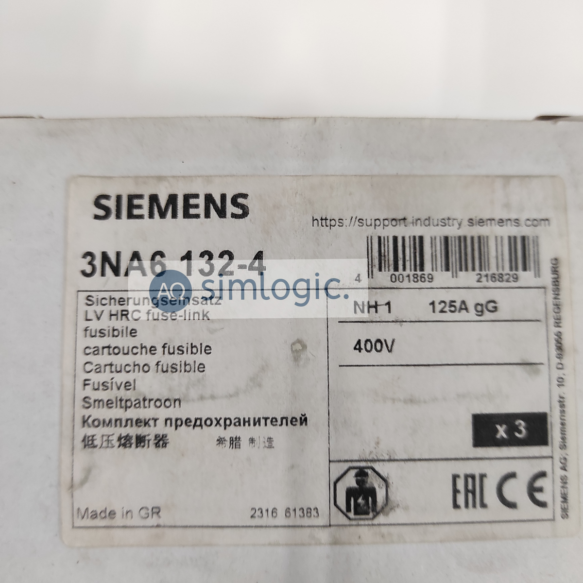 Bezpiecznik NH/NH1 125A SIEMENS 3NA6132-4 sprzedaż na sztuki.