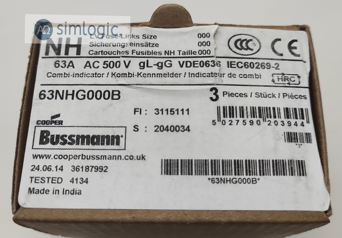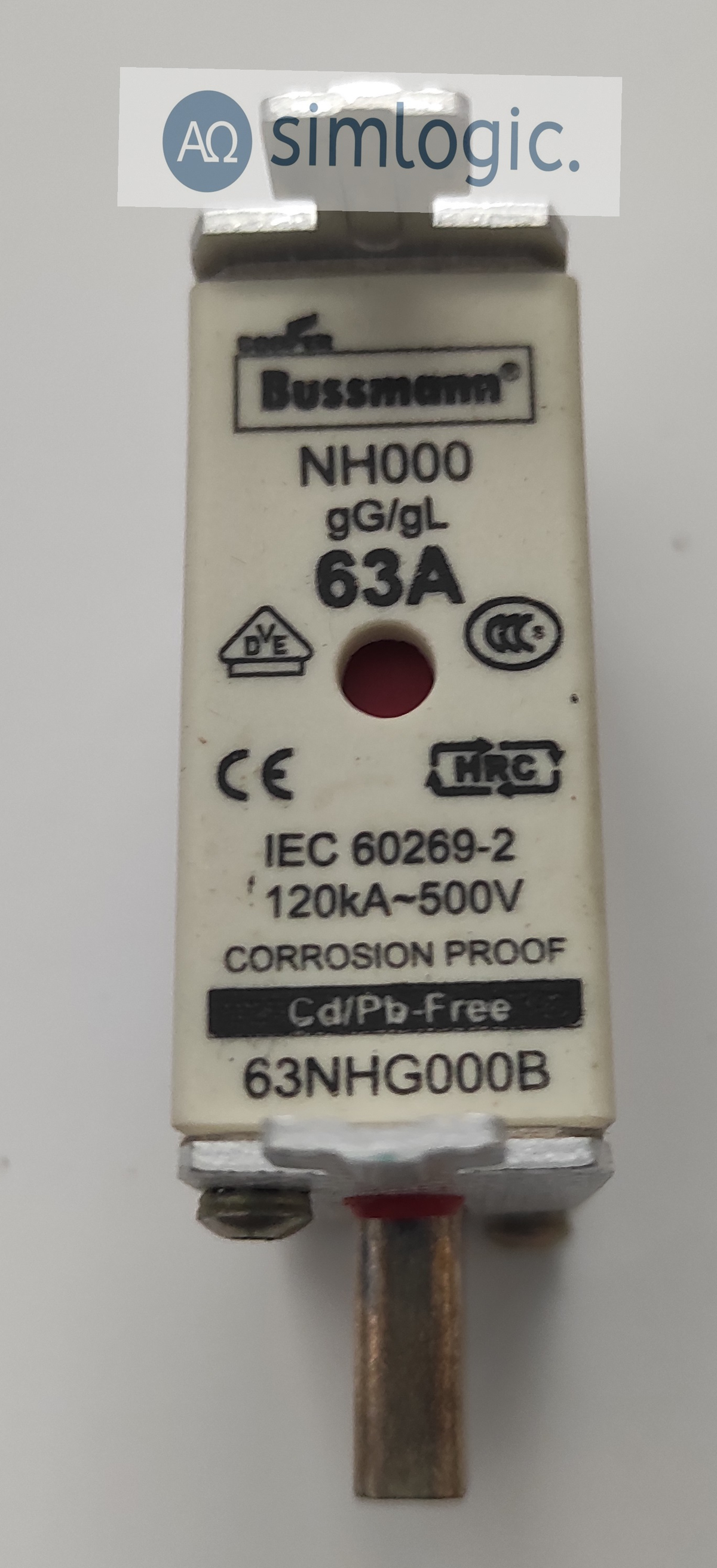 Bezpiecznik 63A BUSSMANN, podwójny wskażnik, napięcie zmianowe 500V.