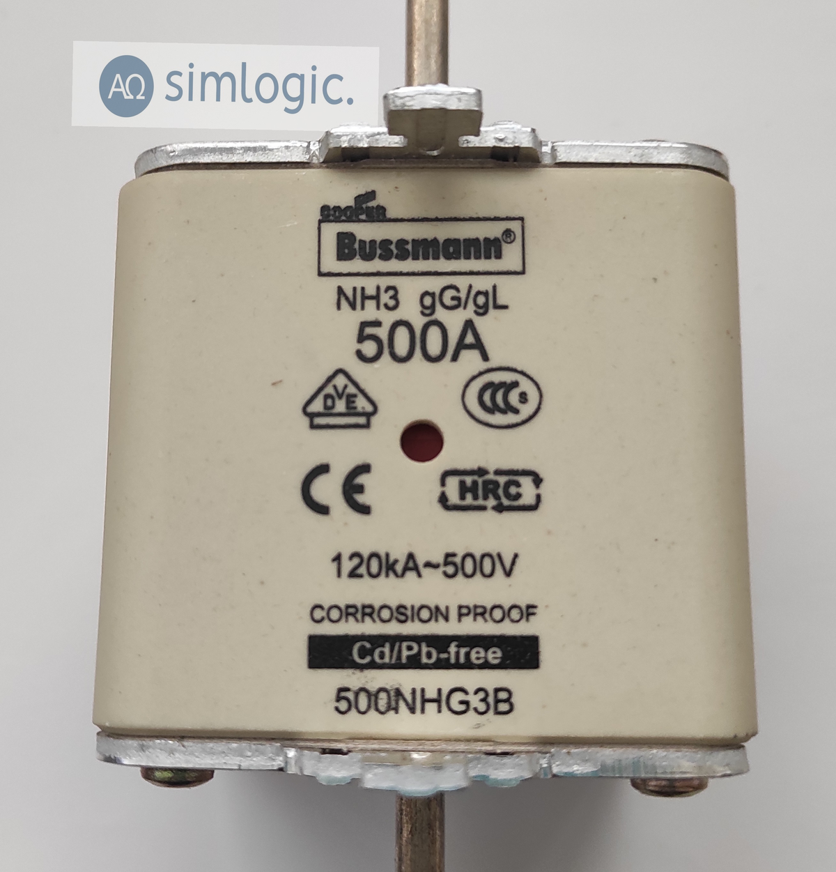 Bezpiecznik BUSSMANN, wkładka bezpiecznikowa o prądzie zmianowym 500A nożycowa podwójna.
