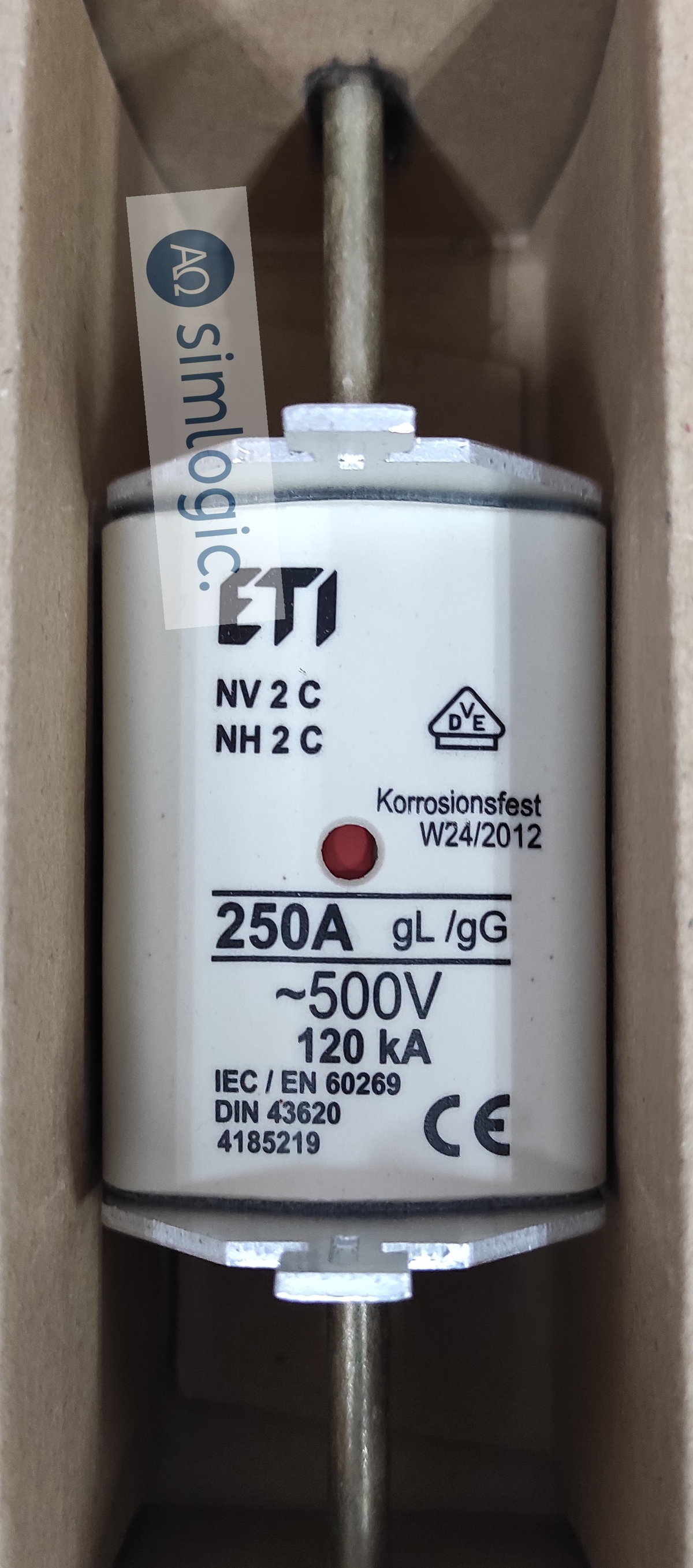 Bezpiecznik firmy EATON , 250A, 500V, 3sztuki w opakowaniu.