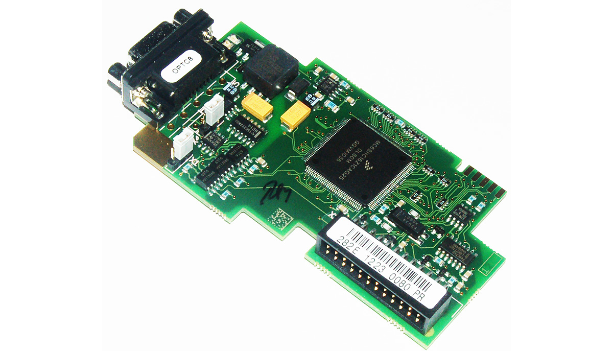 Karta komunikacyjna ModBus do przemienników falowników Cutler-Hammer firmy Eaton serii SVX, SPX 9000. OPTC8 jest identyczna z OPTC2, różni się jedynie rodzajem złącza - OPTC2 śrubowe, OPTC8 DB9.