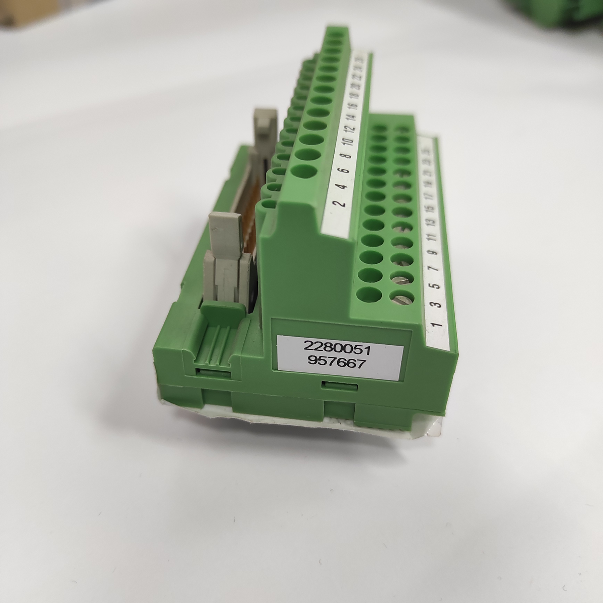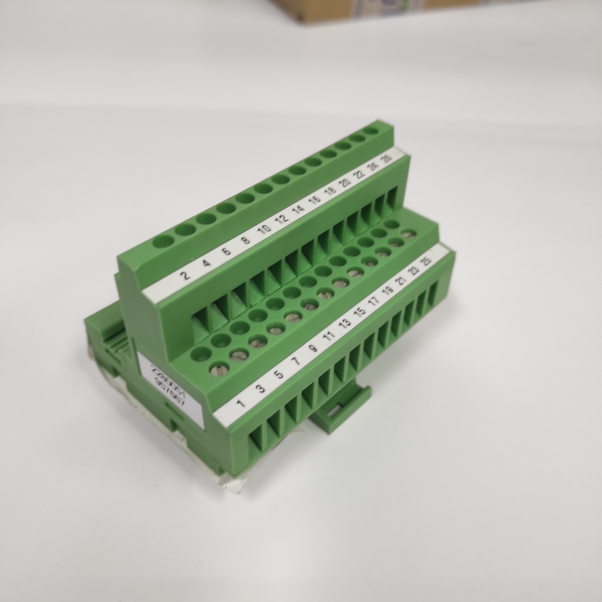 Montarz na szynach, posiada łącznik wtykowy do kabli oraz 26 biegunów z złączami śrubowymi.