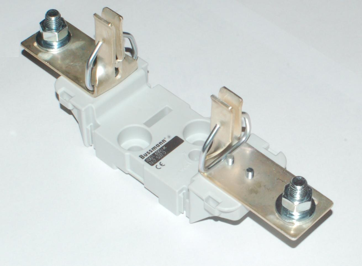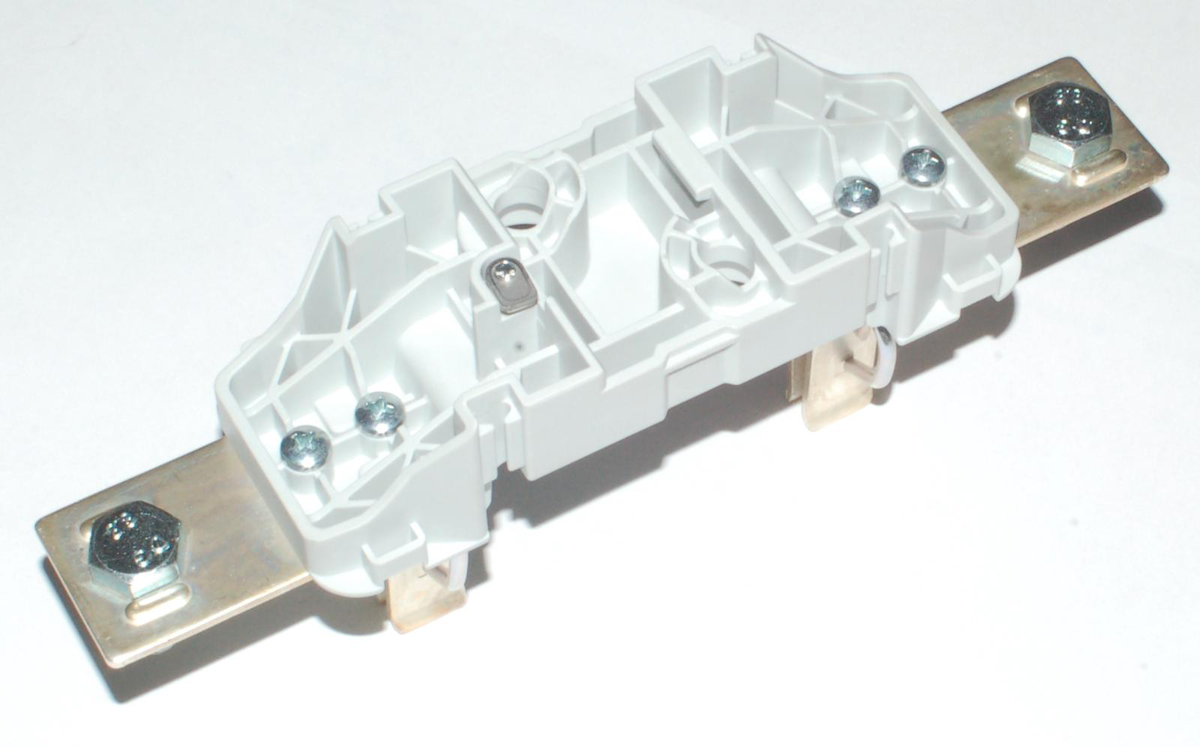 Jednobiegunowa podstawa kompatybilna z bezpiecznikami nożowymi szybkimi NH2. Montowana na szynę DIN lub za pomocą śrub.