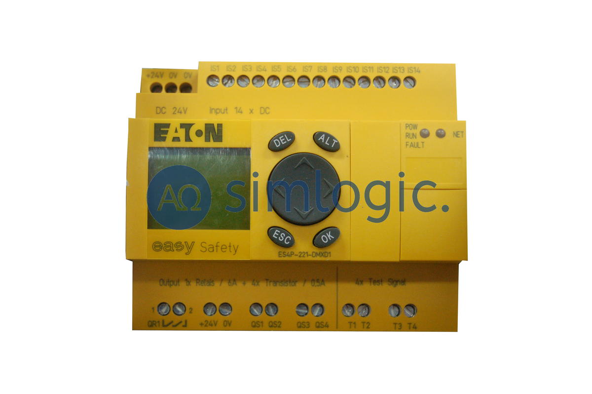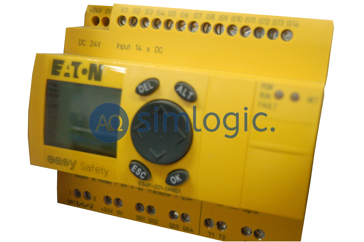Przekaźnik programowalny bezpieczeńśtwa EATON EasySafety, Prąd łącznika: 8A. Liczba wejść cyfrowych: 14. Liczba wyjść cyfrowych: 5. Liczba wejść analogowych: 0. Liczba wyjść analogowych: 4. Napięcie zasilające dla DC: 20.4/28.8V