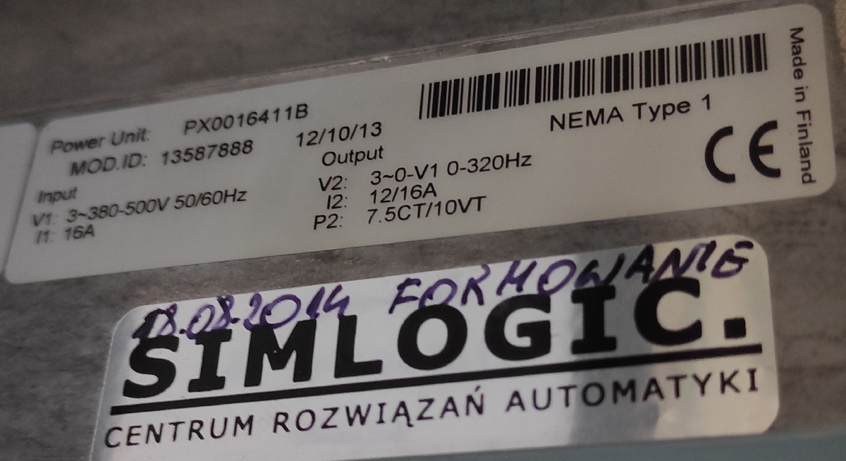 Dane znamionowe znajdują się na zdjęciu załączonym do opisu.