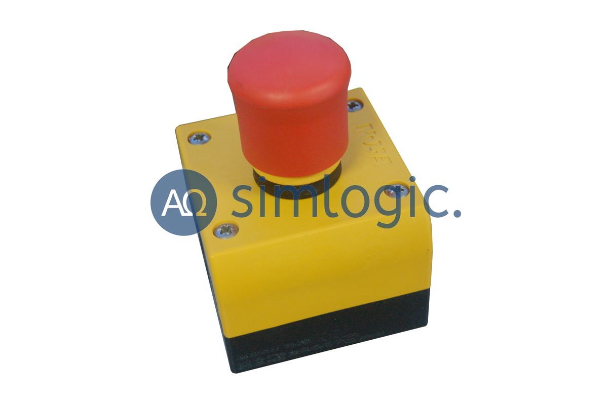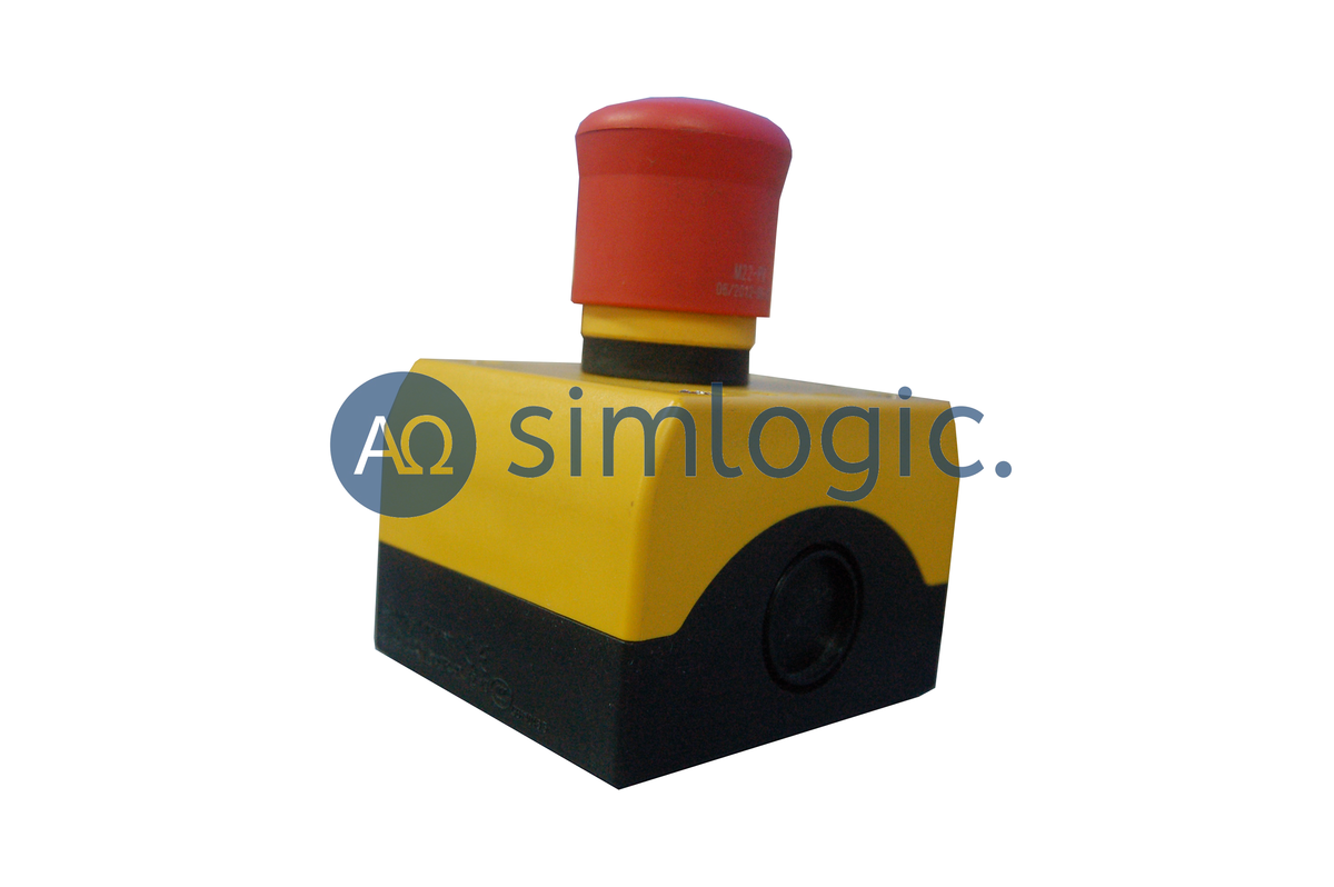 Przycisk bezpieczeństwa firmy EATON M22-PV, kompletny zestaw w obudowie.