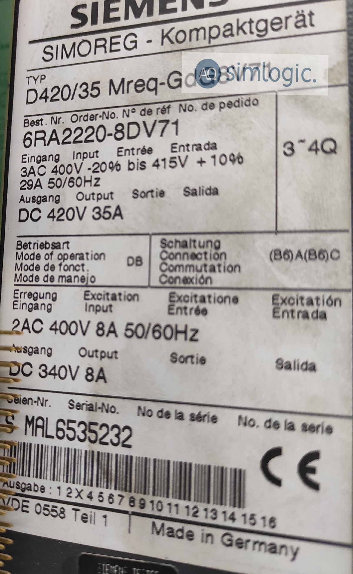 SIMOREG BY SIEMENS 6RA2220-8DV71 / MAN2534583