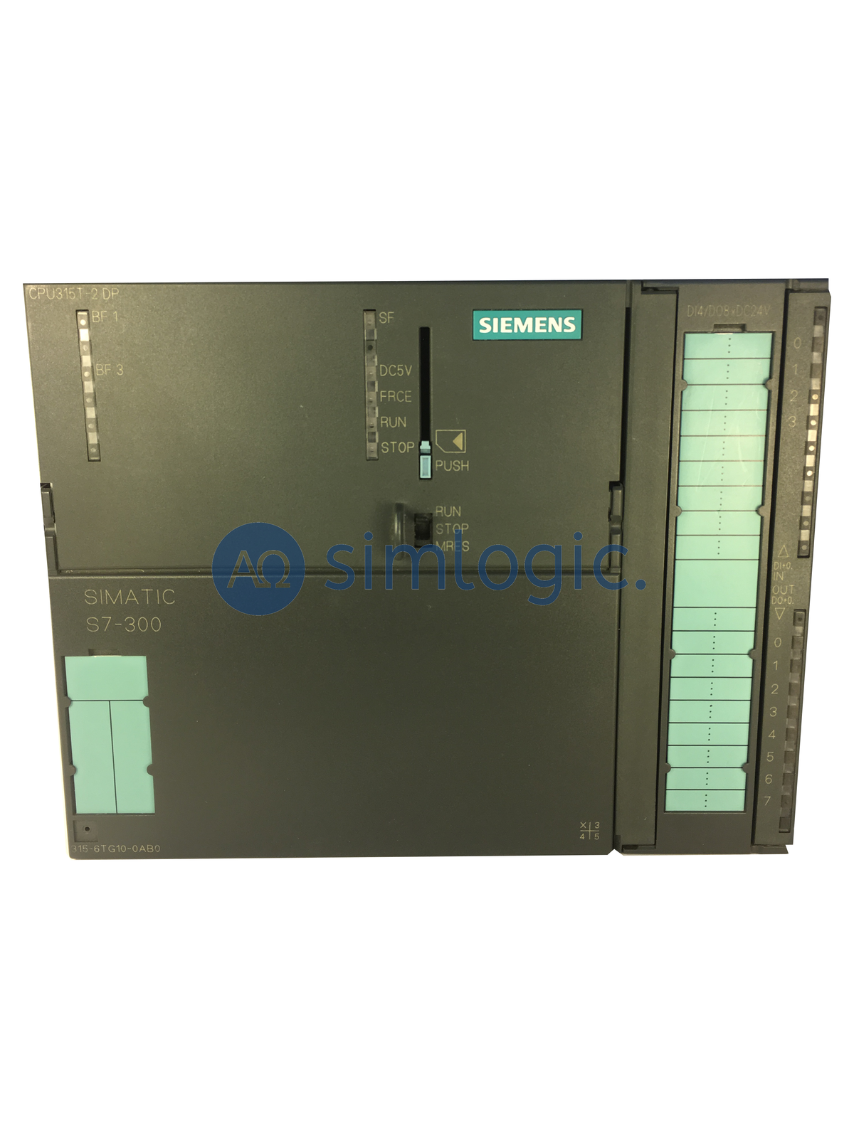 Sterowni SAIEMENS SIMATIC S7-300, CPU 315T-2 DP, centralne urządzenie do PLC. 128 kilobajtów pamięci roboczej, 1 interfejs MPI, DP 12 Mbit/ S2. Interfejs DP (Drive), Zintegrowane WE/ WY przednie złącze (1x 40 PIN). Konieczna karta pamięci Micro min. 4 MB.
