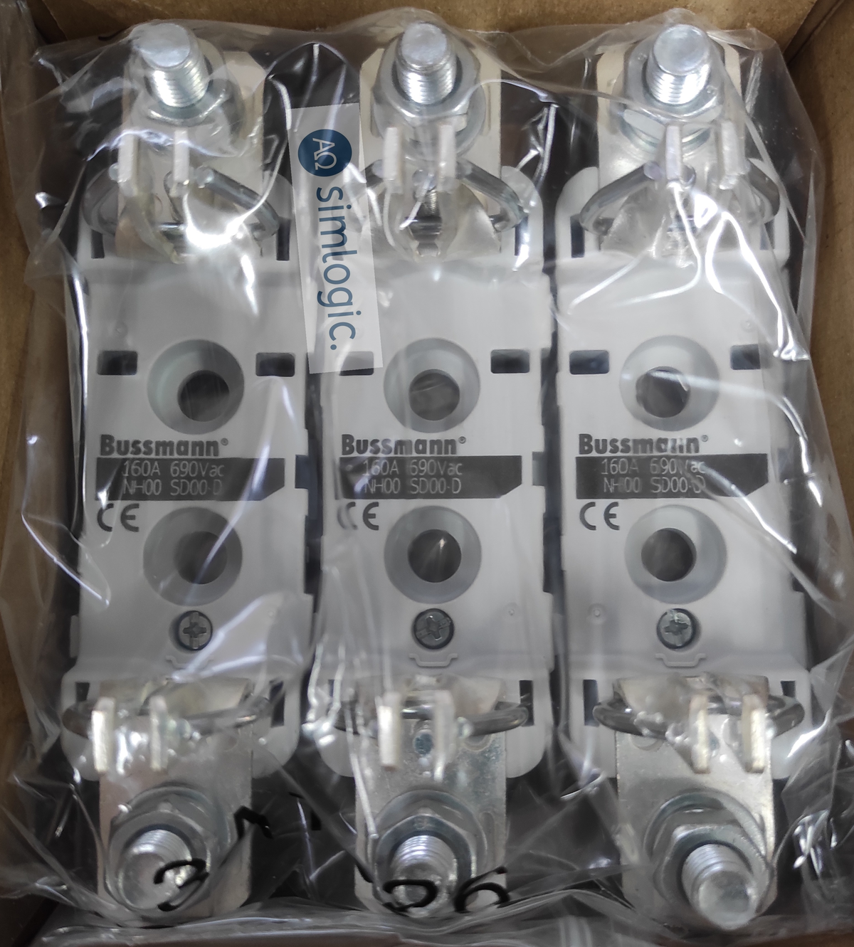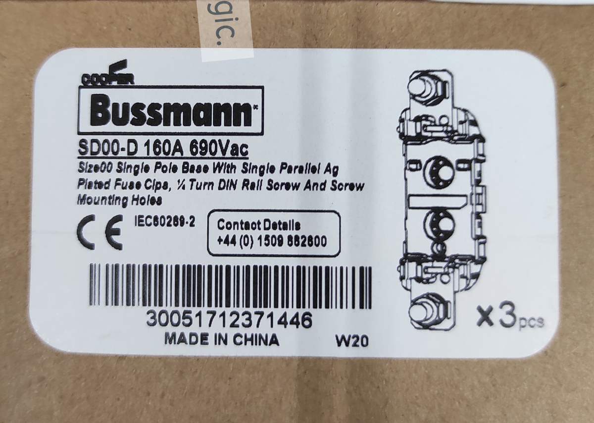 Uchwyt bezpieczników 160A BUSSMANN do montowania na szynie.3 sztuki w opakowaniu.